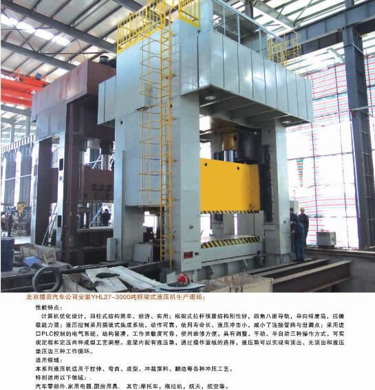 公司能夠為市場提供42大類500余個品種的標(biāo)準(zhǔn)液壓機(jī)和非標(biāo)專用、精密伺服液壓機(jī)。產(chǎn)品廣泛應(yīng)用于汽車、航天、粉末冶金、船舶、輕工、建筑、電子、家用電器等行業(yè),并代表著我國通用液壓機(jī)的發(fā)展水平。公司生產(chǎn)、設(shè)計、開發(fā)的液壓機(jī)產(chǎn)品完全能夠滿足國內(nèi)不同用戶多層次的需要。